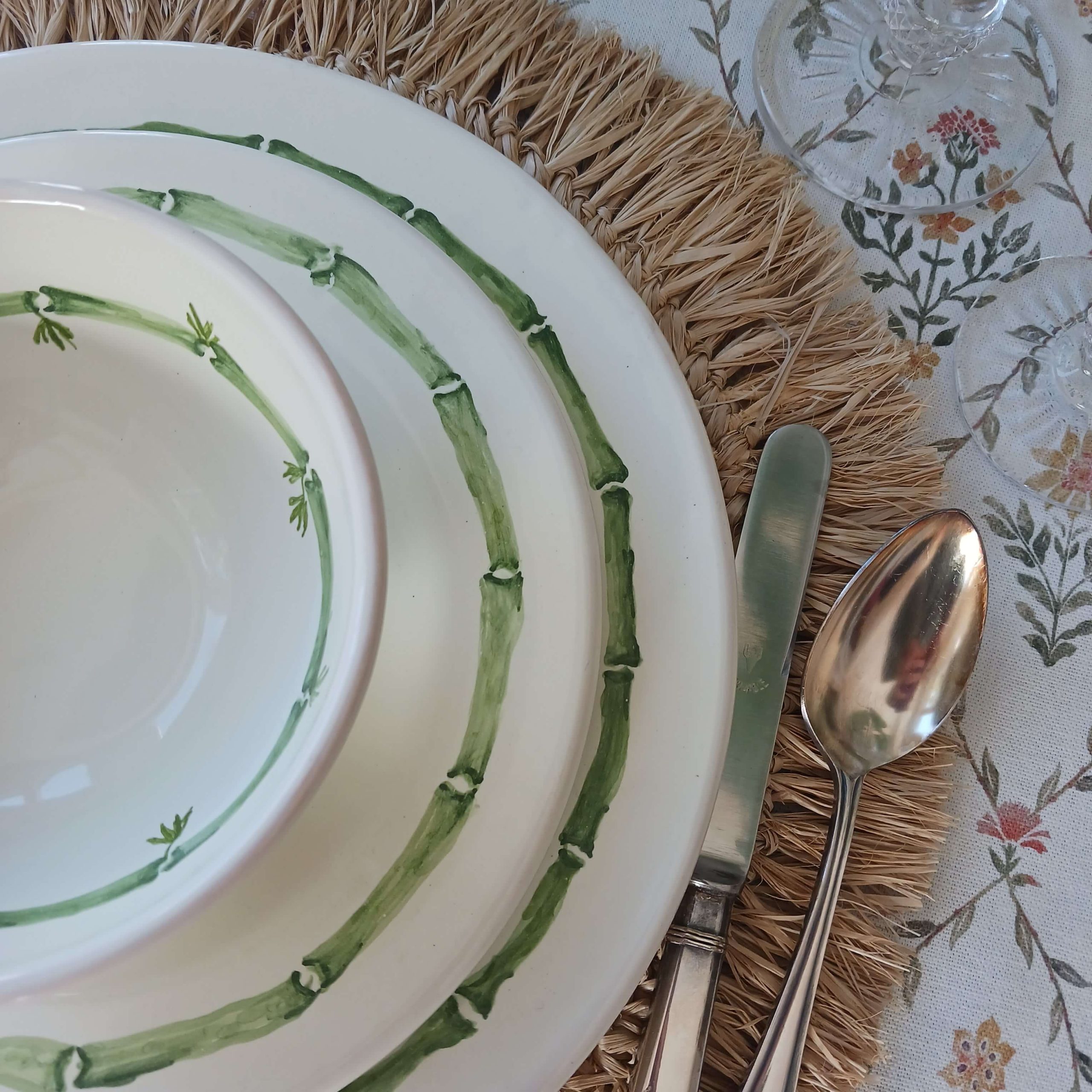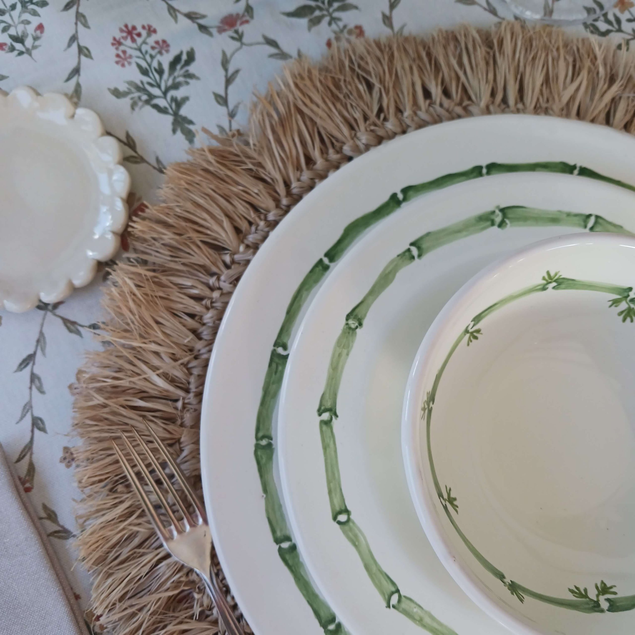 Nuestra colección Bambú refleja la delicadeza y belleza serena de esta planta de origen oriental. Cada pieza de esta vajilla IUKA evoca la esencia de la naturaleza en su forma más pura. Su diseño sencillo y atemporal aporta calma y sofisticación a cualquier mesa. ¡Transforma cada comida en un momento muy especial!