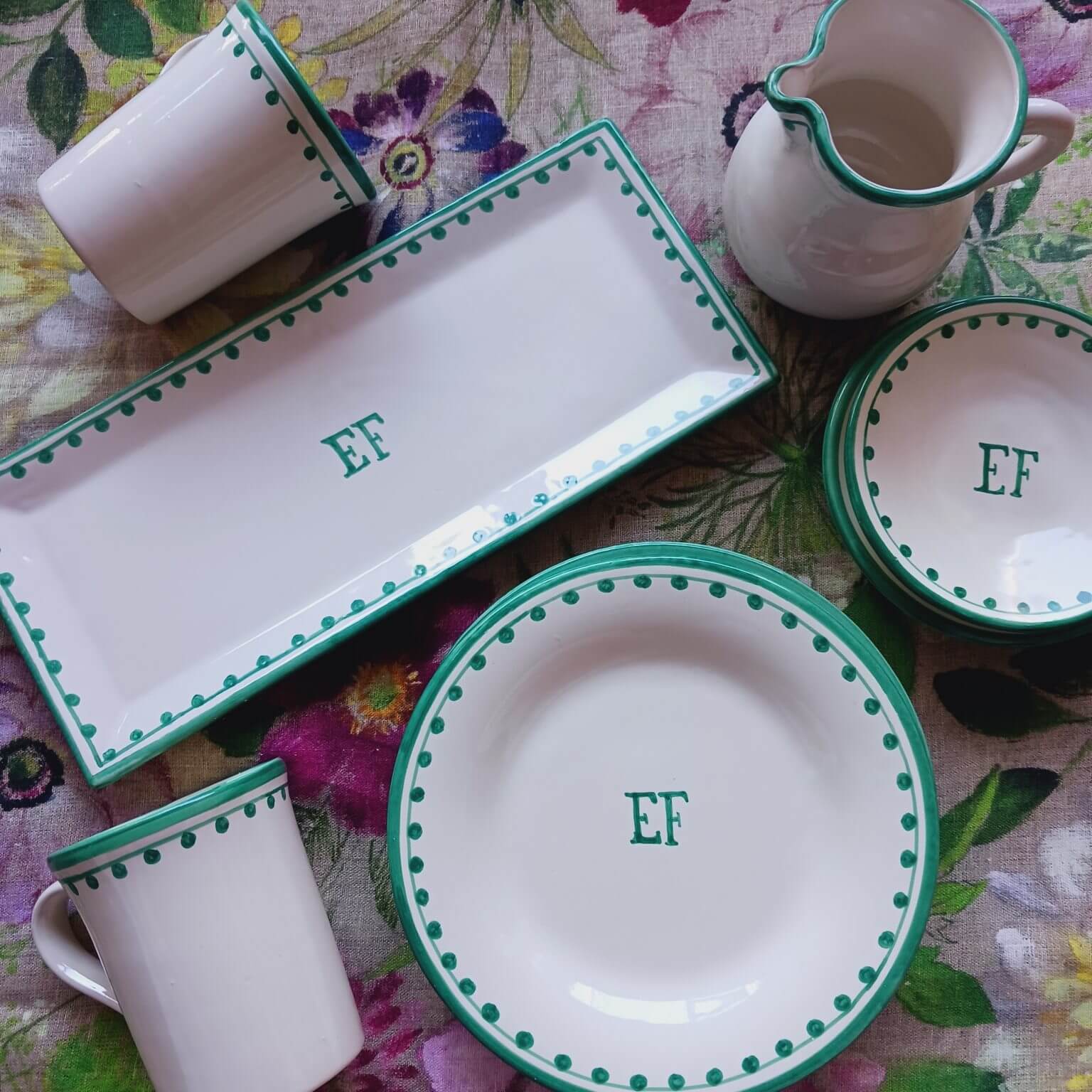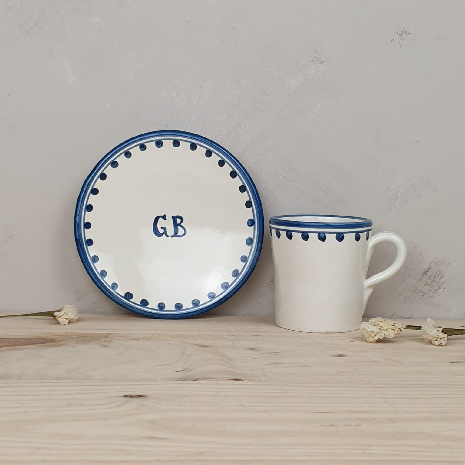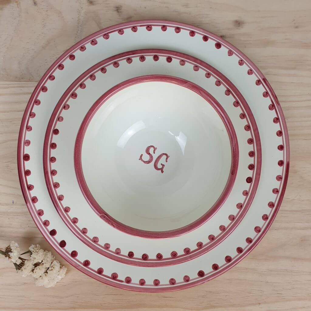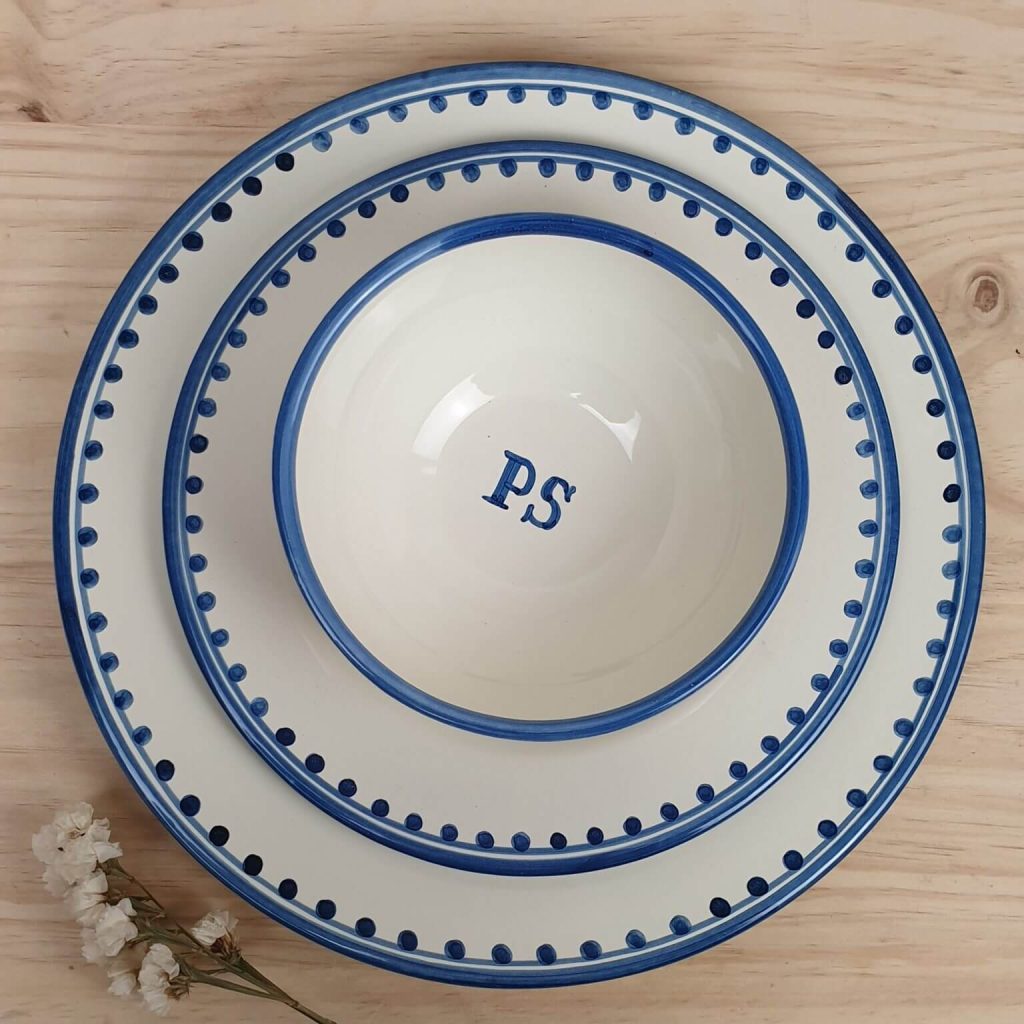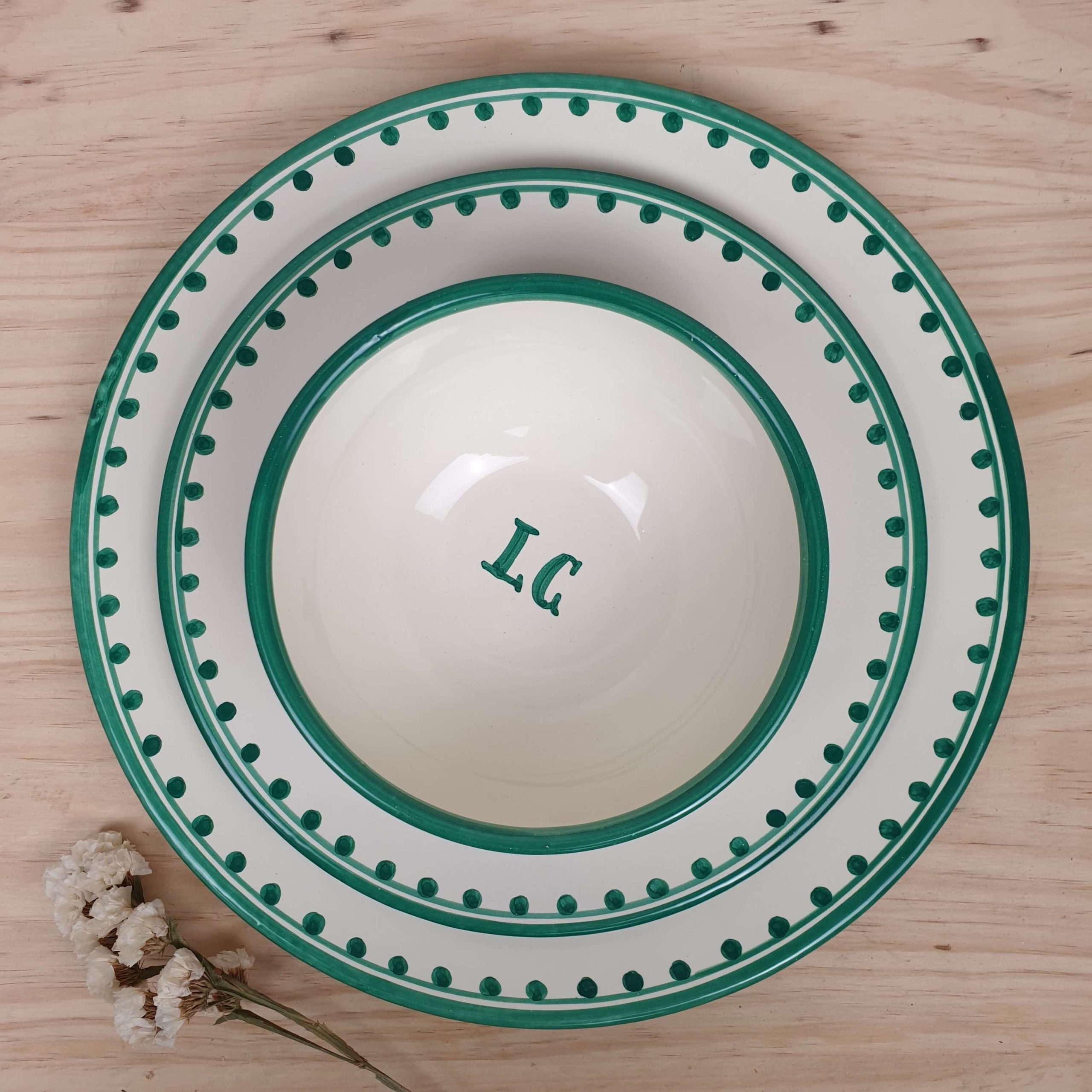 Como todas nuestras vajillas, está pintada a mano, pudiéndose personalizar con iniciales y con una amplia gama de colores.