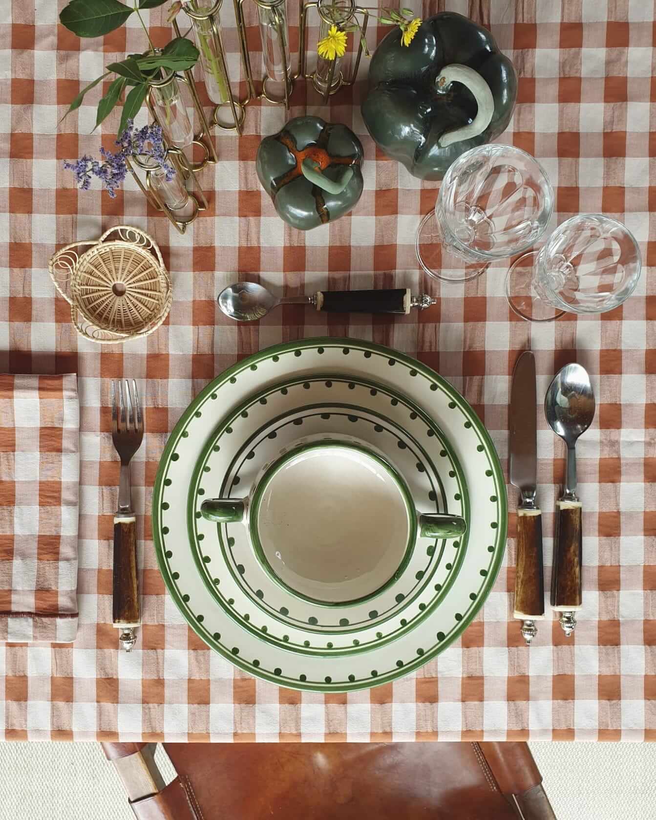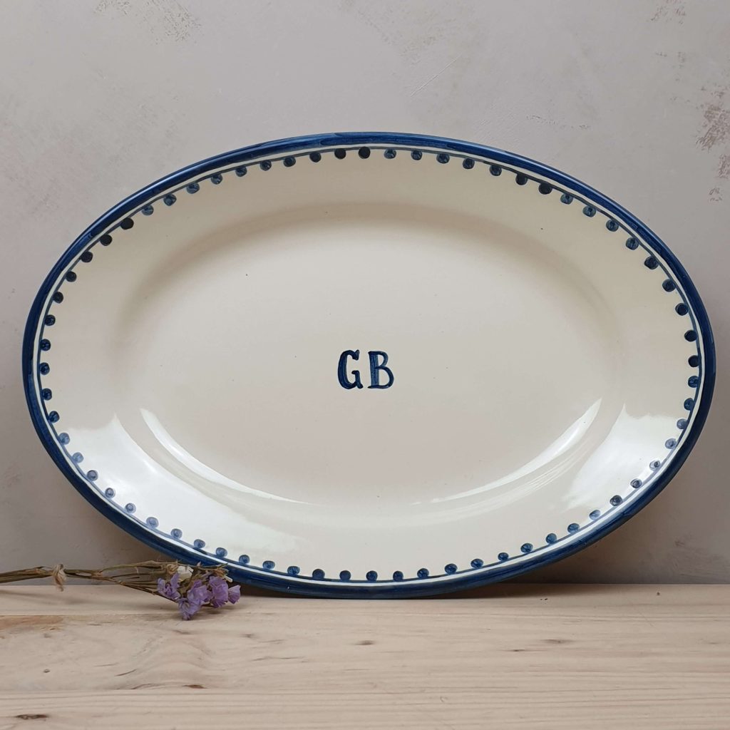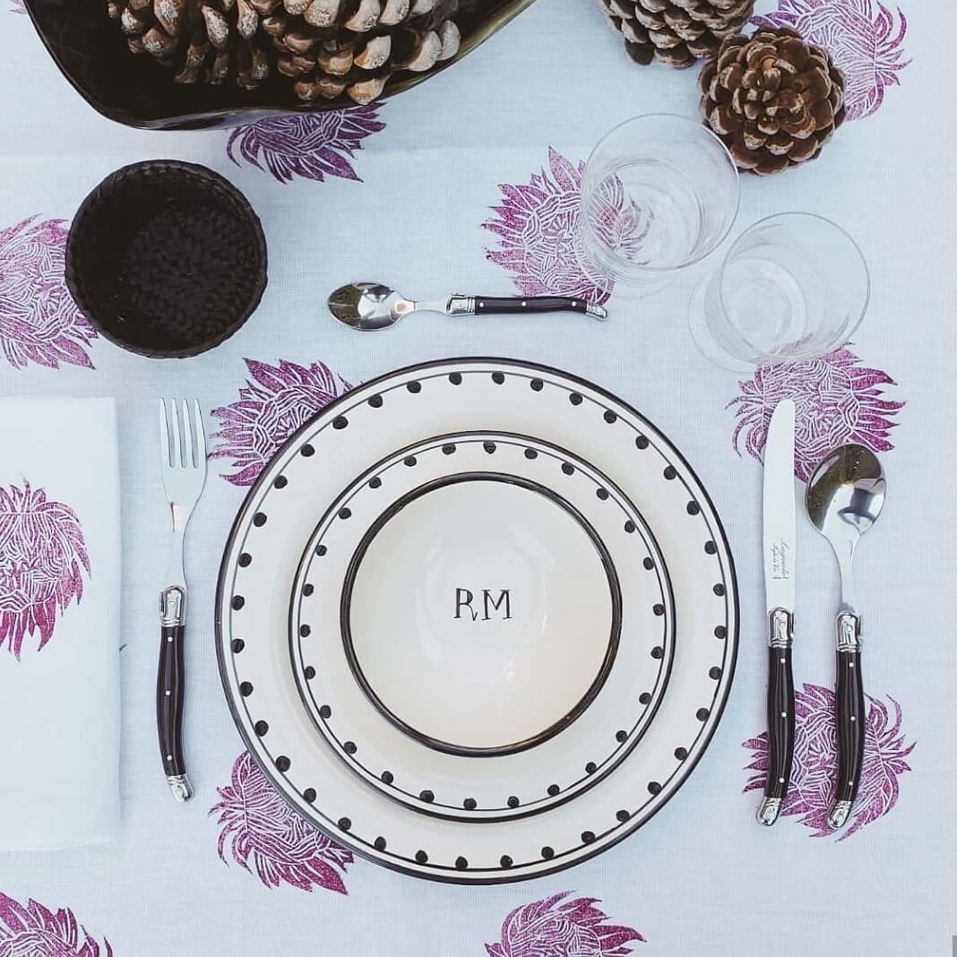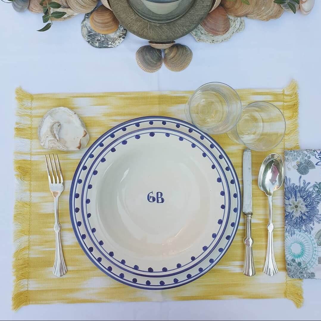 Como todas nuestras vajillas, está pintada a mano, pudiéndose personalizar con iniciales y con una amplia gama de colores.