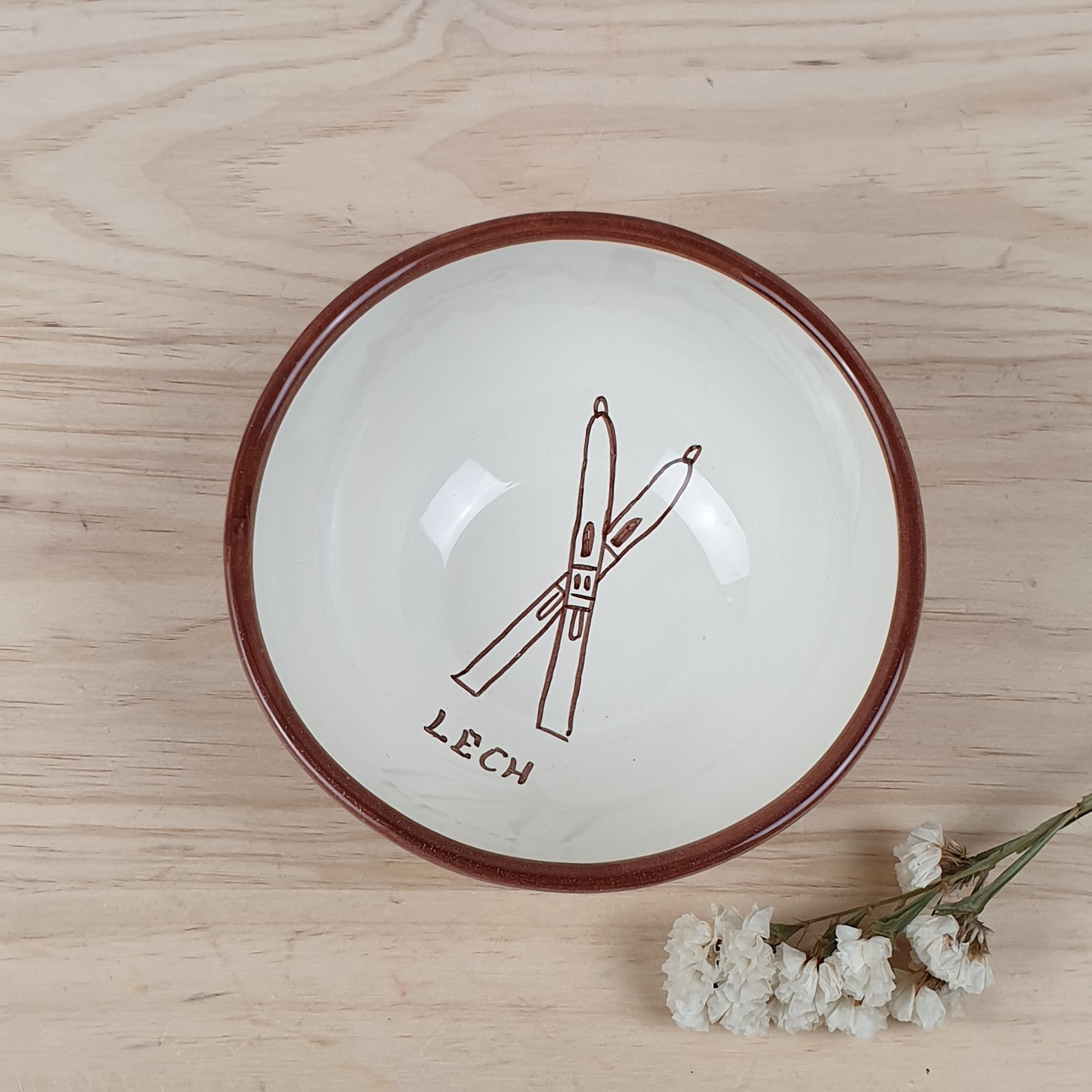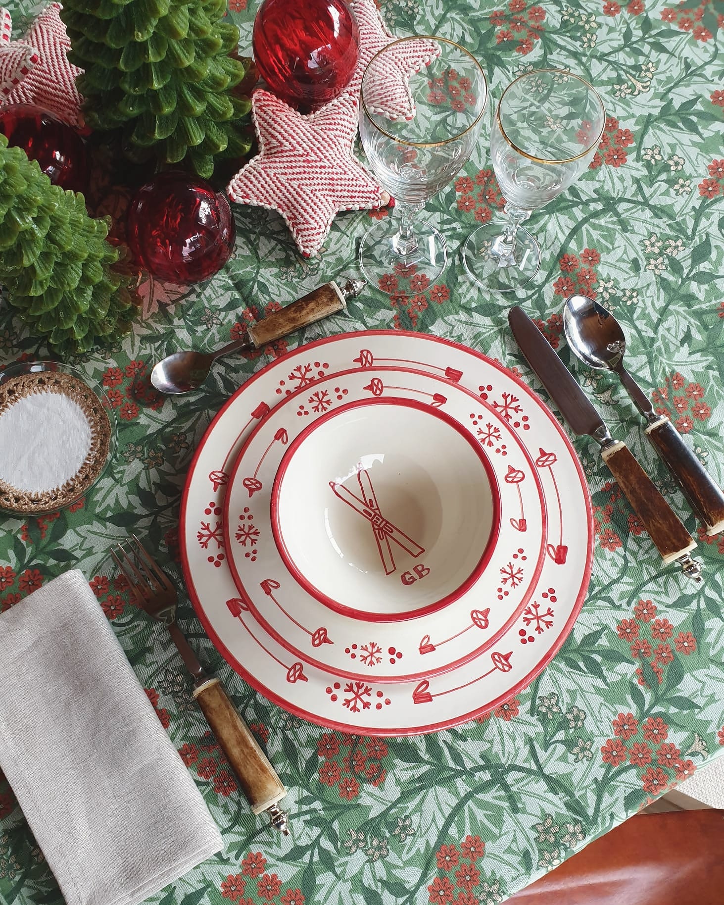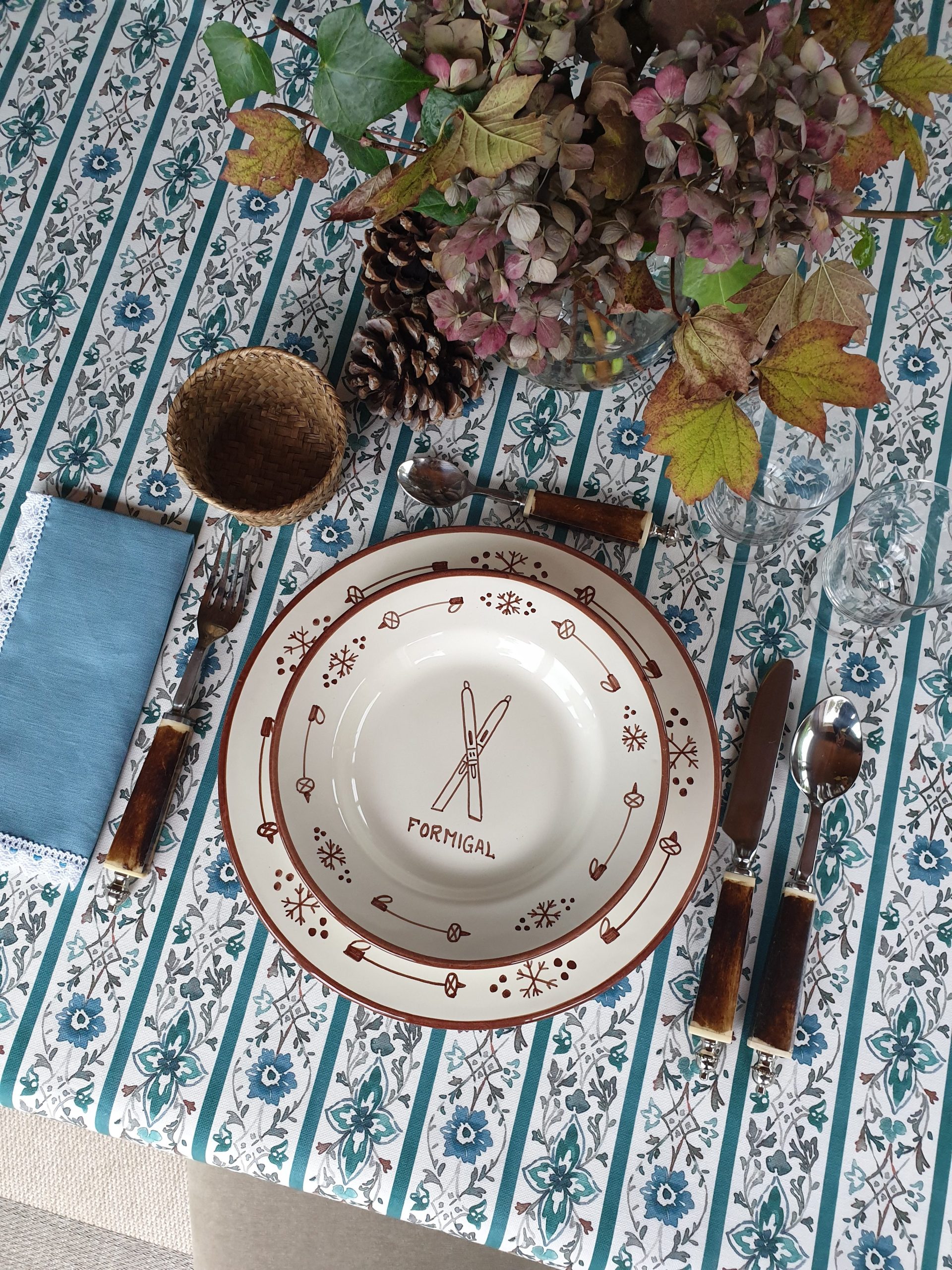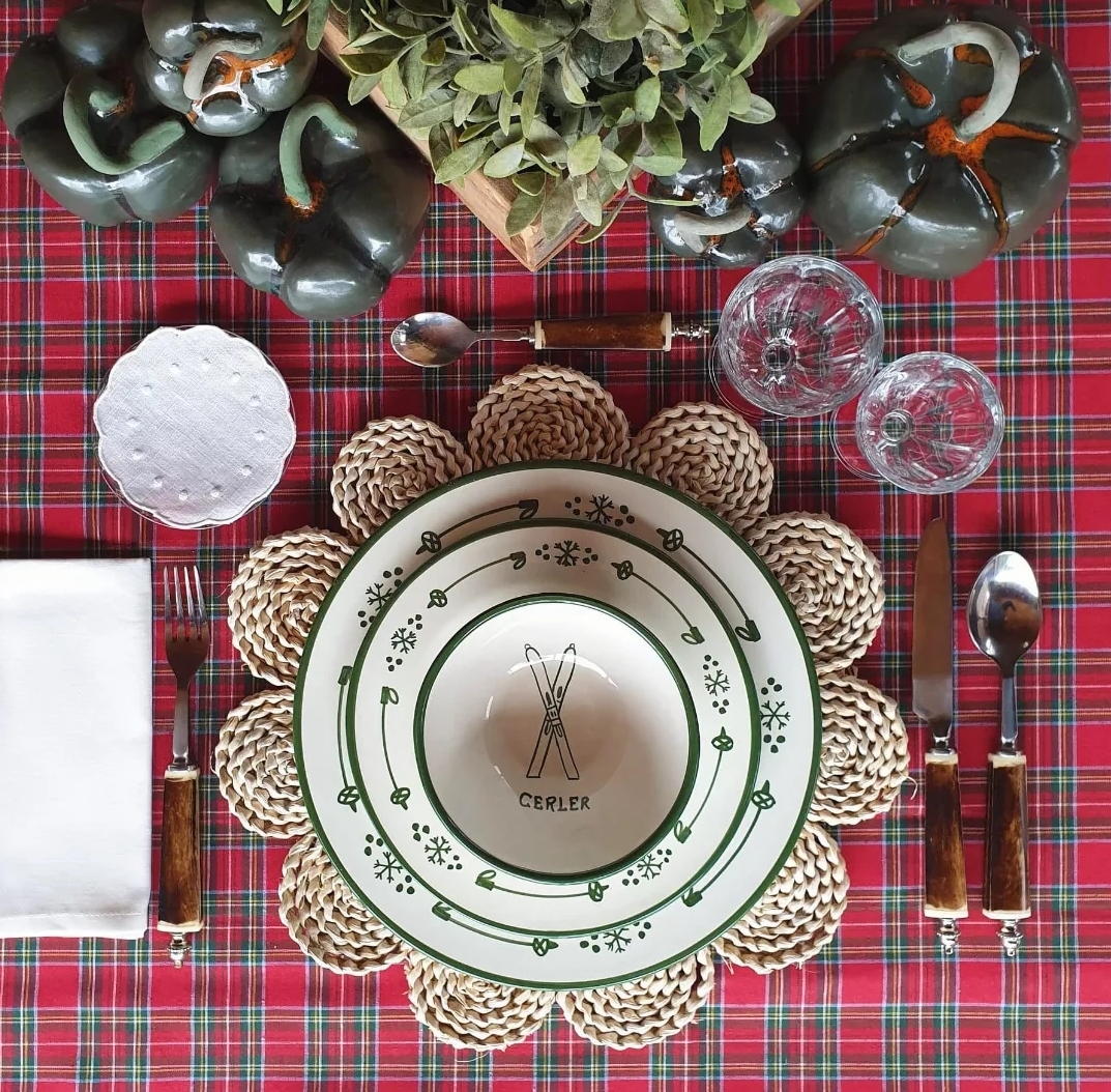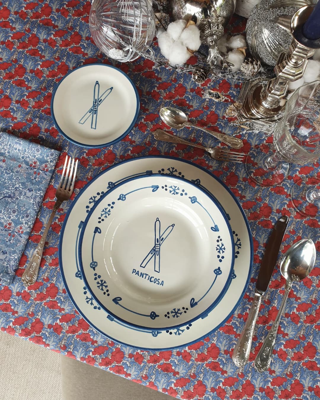 La vajilla Tirol la diseñamos una tarde de invierno, en una casa en medio de las montañas y rodeada de nieve. Los bastones y esquíes antiguos de madera, colgados en la pared como decoración, fue nuestra inspiración. No creemos que esta vajilla Tirol deba estar únicamente en lugares donde predomina el esquí; ¿Y si desayunas cada día con la vajilla que te recuerda a tu pasión, al lugar donde fuiste o eres feliz?